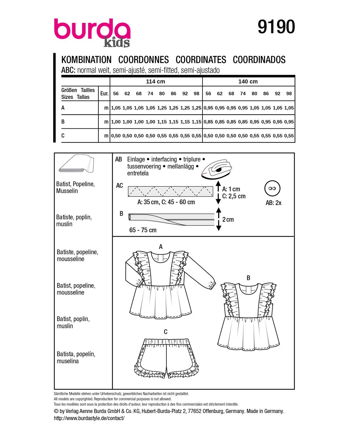 Empfohlener Stoff: Batist, Musselin, Popeline