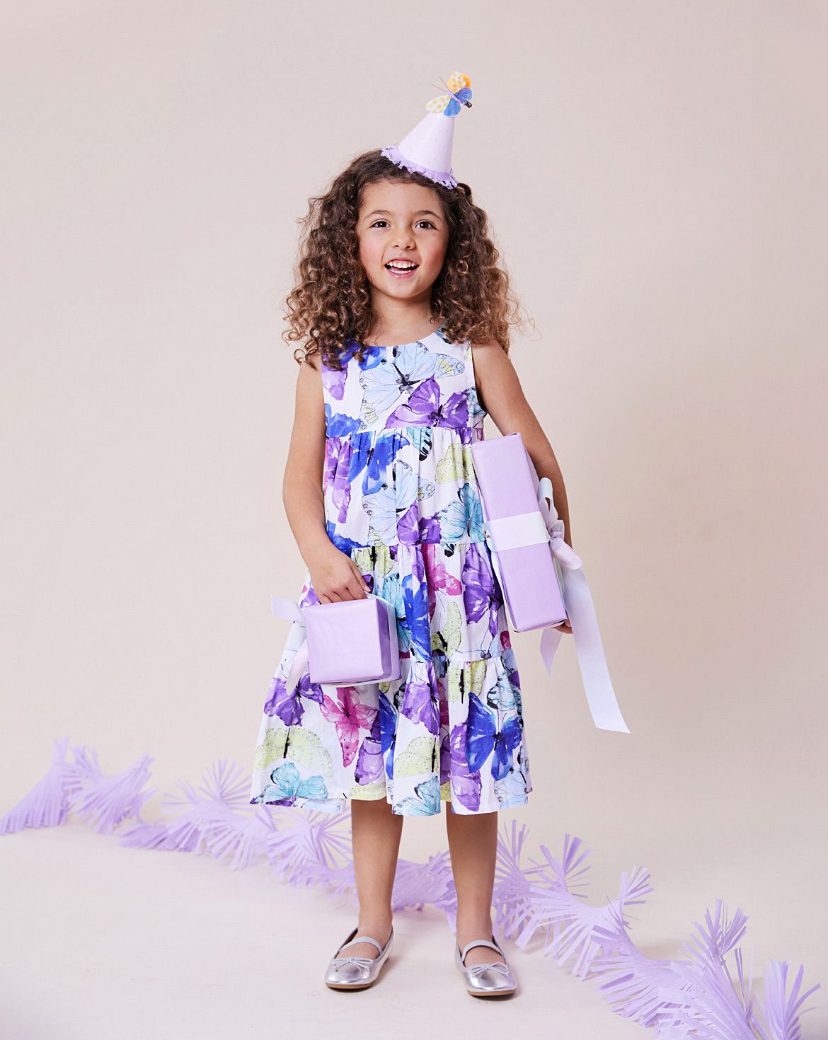 Drei bezaubernde Kleider für festliche Anlässe: Das erste Kleid überzeugt mit Wasserfall-Optik dank dreier Rüschenlinien – leicht, locker und sommerlich festlich. Das zweite Modell punktet mit aufgenähten Taschen, Borte am Saum und kecker A-Linie – ideal für Geburtstagskinder, die schick, aber nicht zu fein sein möchten. Das dritte Kleid kombiniert schwebende Federn und Flügelärmel zu einem Mix aus Romantik und Übermut. Alle drei Varianten sind hinten mit einer Knopfleiste versehen – ein liebevolles Detail, das jedes Kleid abrundet.