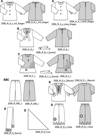 Vielseitige Kombination aus einfachem Shirt und Gummizughose. Ob Pirat, Max und Moritz oder Struwwelpeter, ein Koch, ein orientalischer Prinz, Clowns, die unterschiedlichen Details und Accessoires machen das Kostüm.