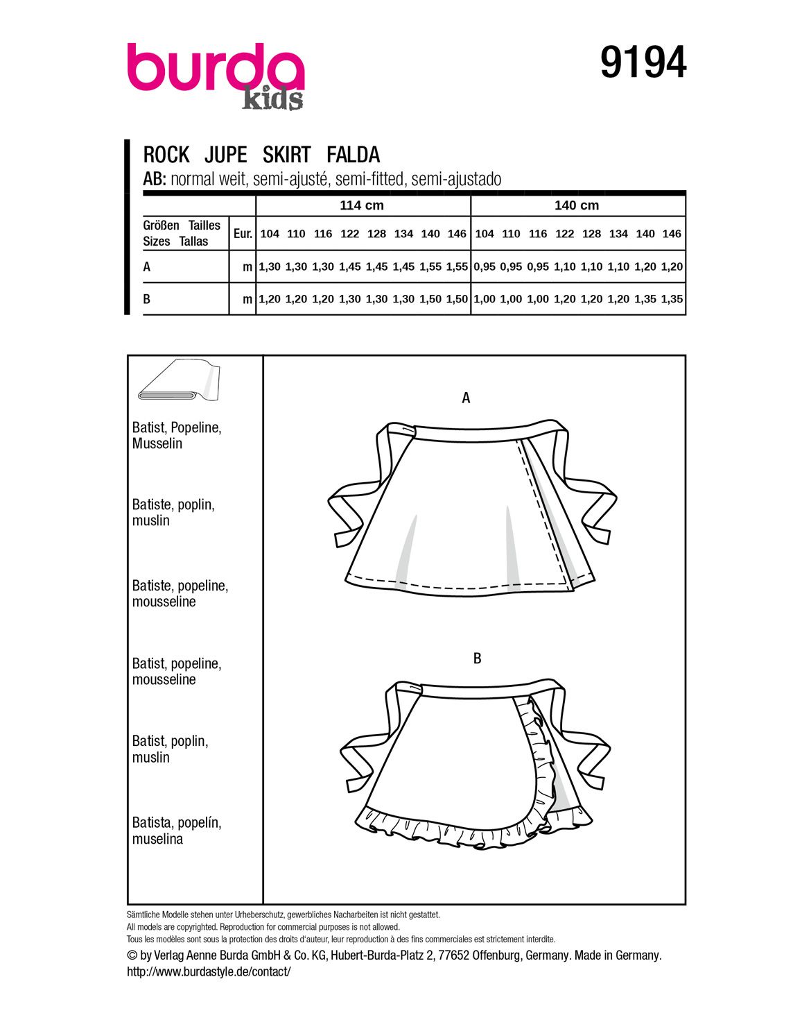 Empfohlener Stoff: Batist, Musselin, Popeline