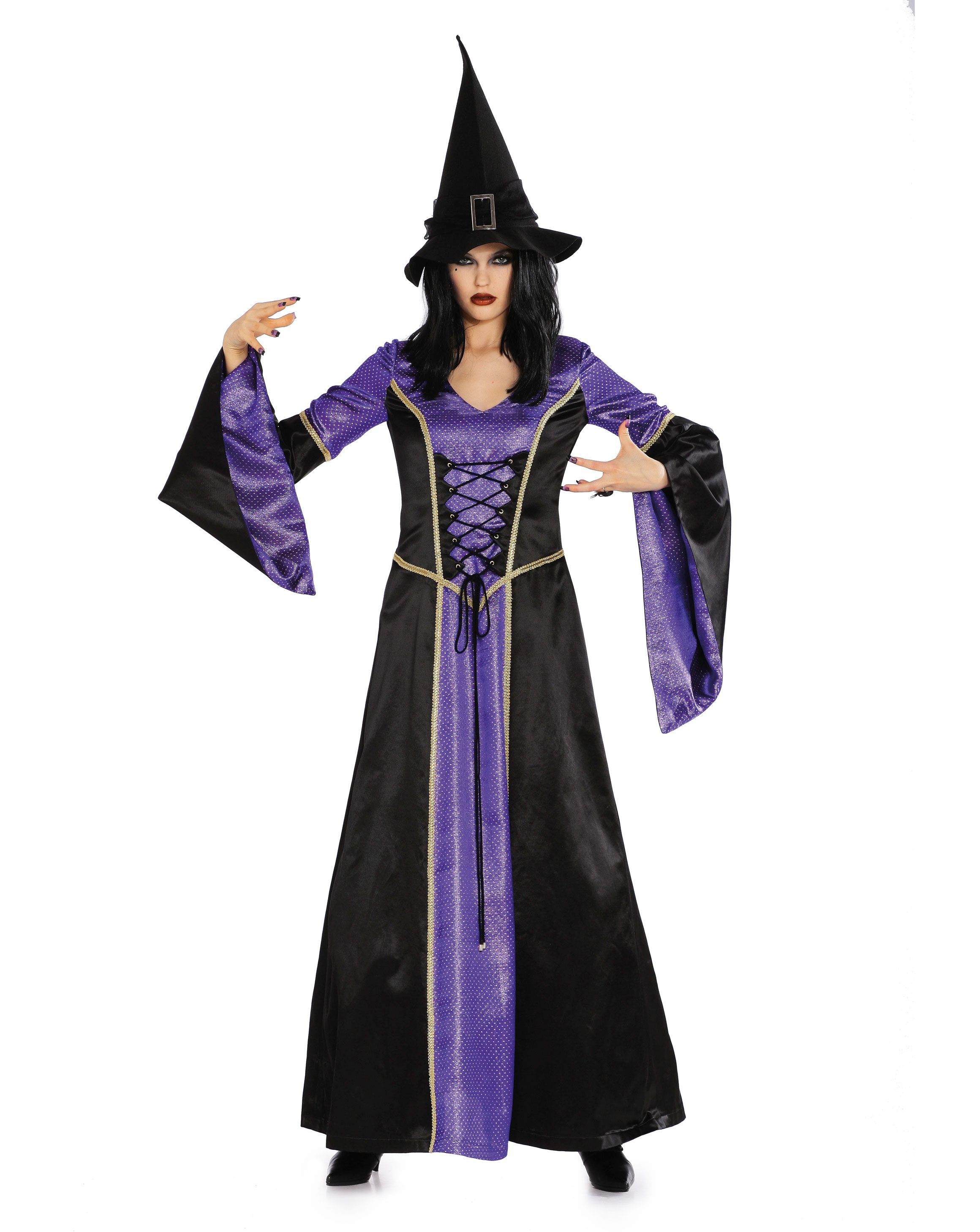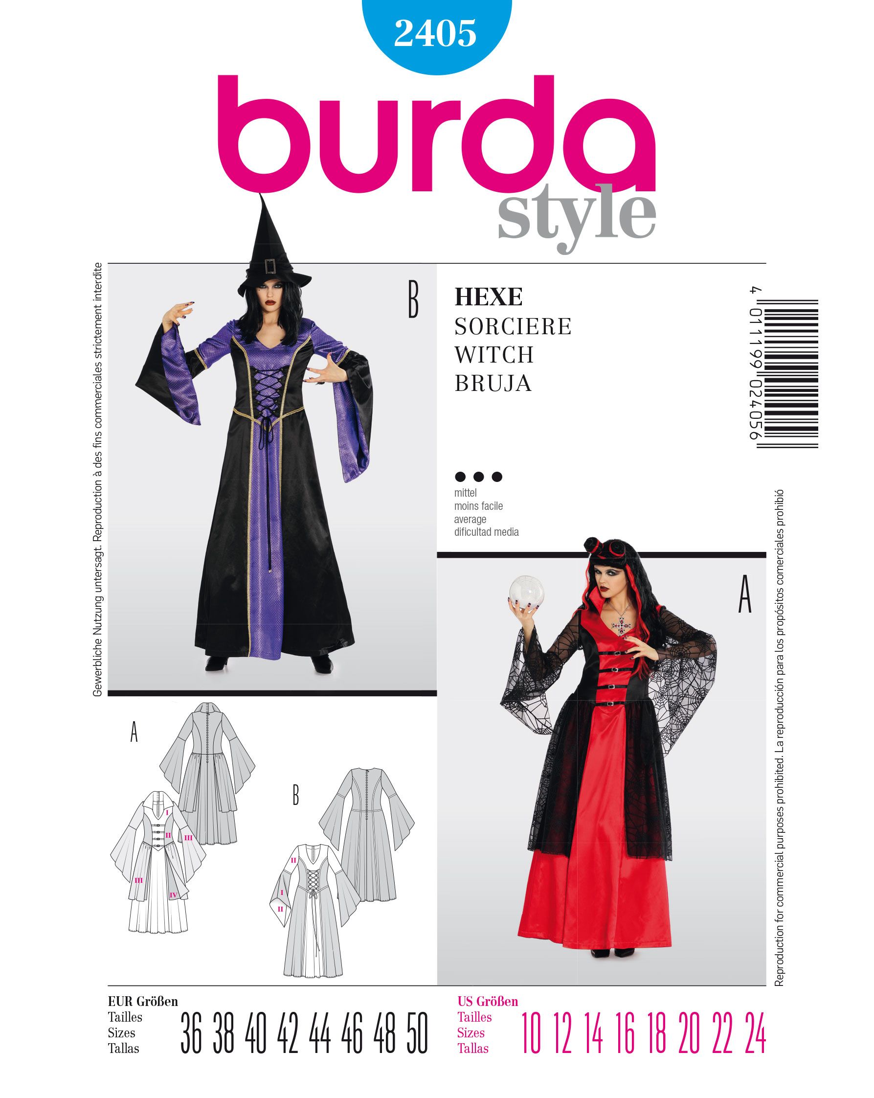Die dunklen Mächte faszinierten schon immer. Hier zwei zauberhafte Kleider für Hexe oder Wahrsagerin, mit vertiefter Taille, interessanten, weiten Ärmeln und dekorativen Riegeln oder Schnürung. A mit Überrock und Ärmeln aus Tüll. Mit anderen Stoffen können Sie ganz andere Modelle zaubern, z. B. ein mittelalterliches Kleid oder ein Ballkleid.