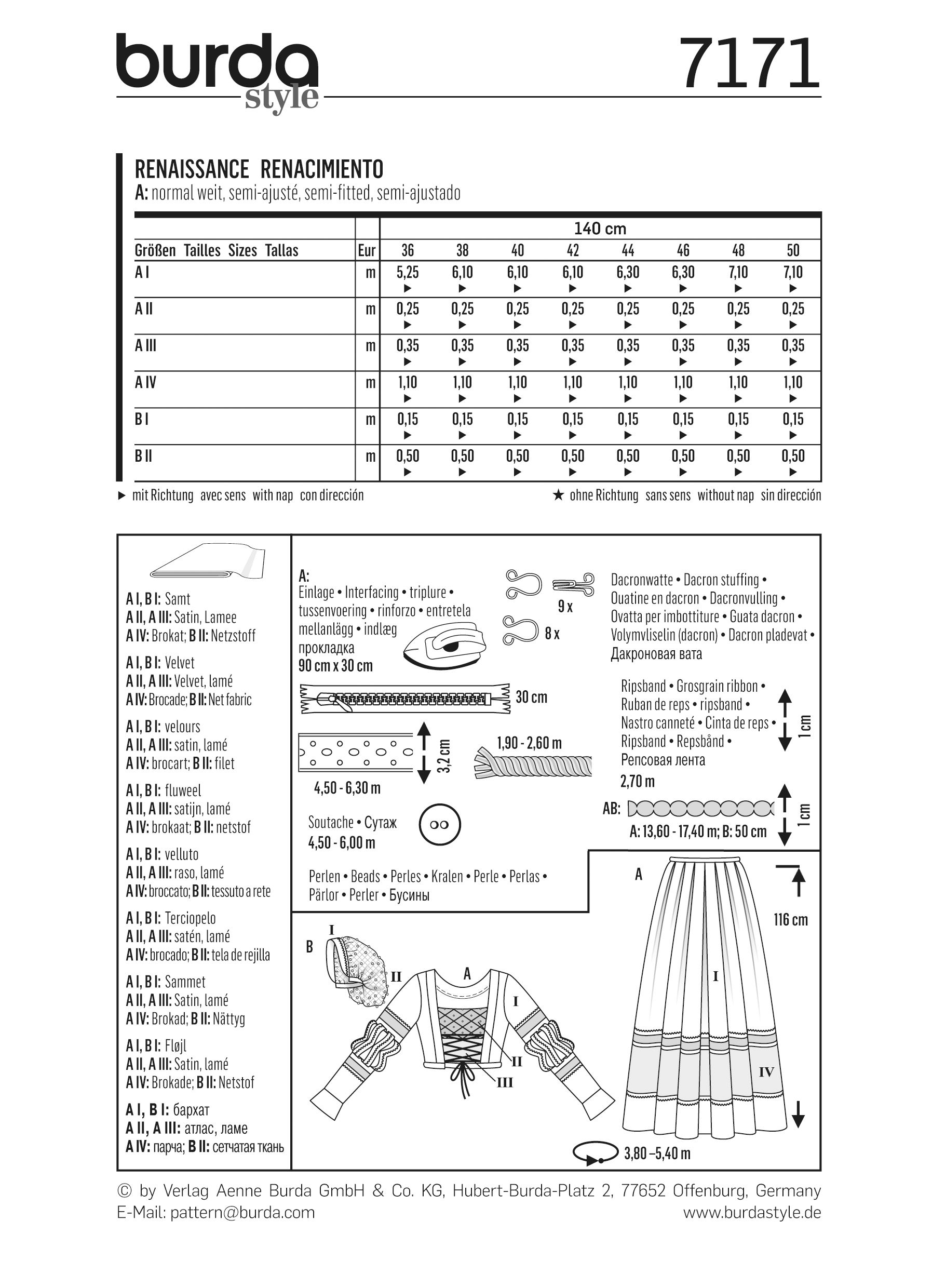 Prächtiges 2‑teiliges Kleid für den grossen Auftritt im Stil der Renaissance. Kostbare Stoffe, Spitze und Goldborten kommen zum Einsatz. Ein eckiger Ausschnitt, die Schnürung am Vorderteil und die aufwändigen, teilweise durchbrochenen Ärmel zieren das schmale Oberteil. Der Rock ist in der Taille in tiefe Falten gelegt. Dazu stilecht das Haarnetz mit Perlen bestickt.