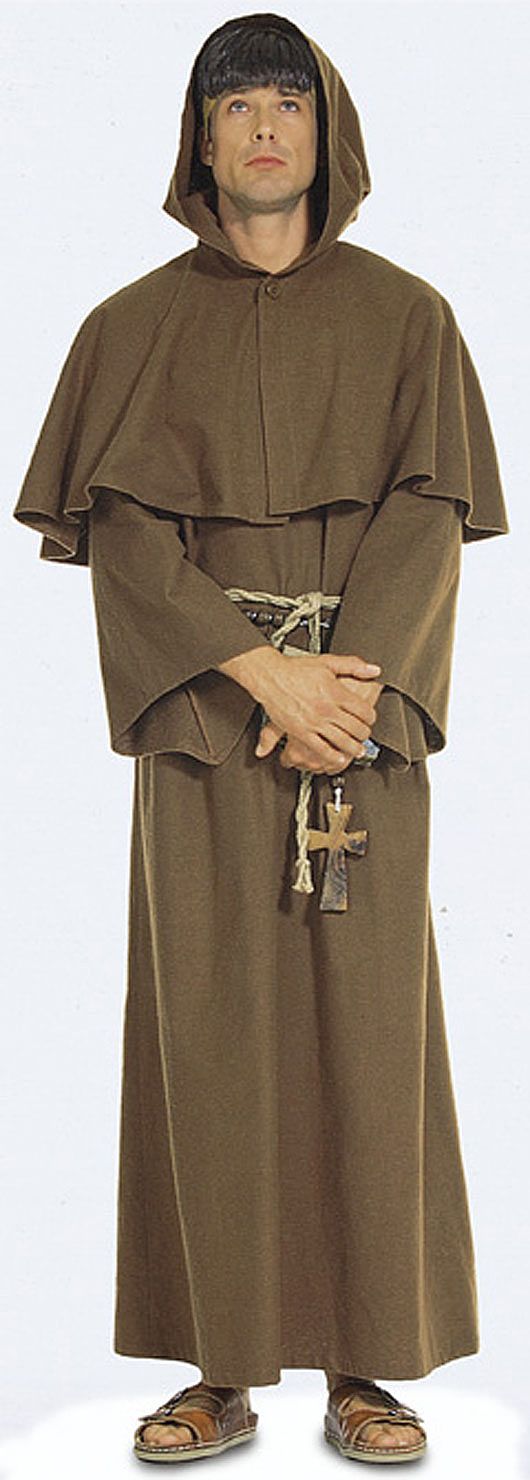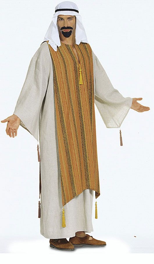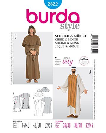Sehr weites bodenlanges Gewand, A für den Scheich mit dekorativem Überteil und Quasten, B für den Mönch mit separatem kurzem Kapuzencape.