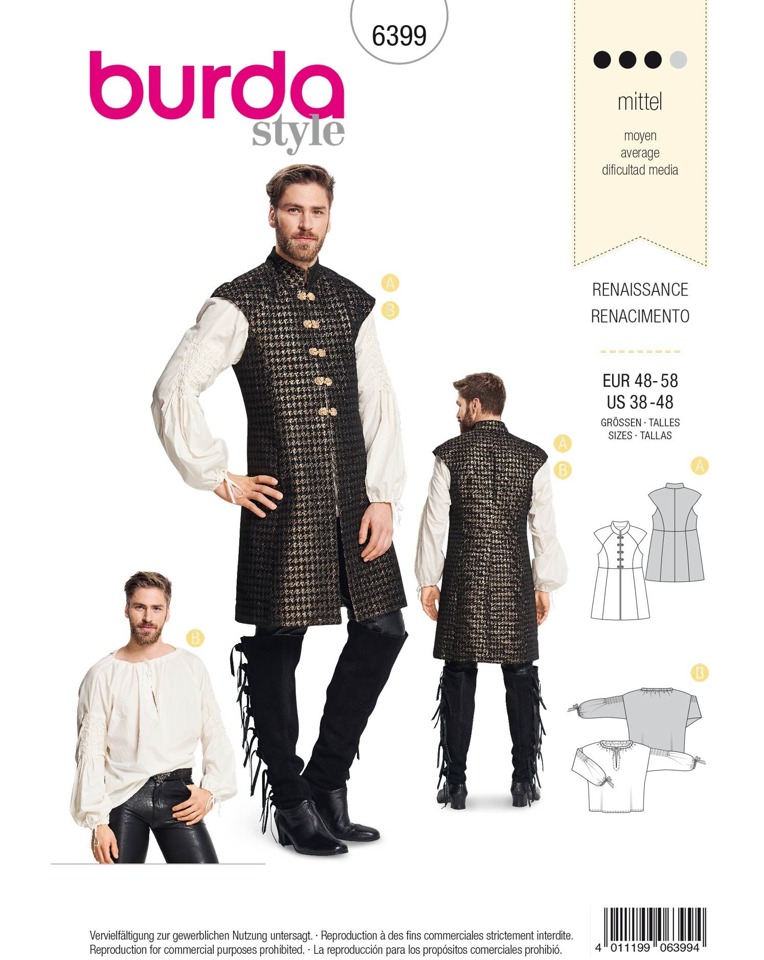 Schnittmuster für ein Herren-Renaissance-Outfit, bestehend aus einem langen Wams und einem Hemd