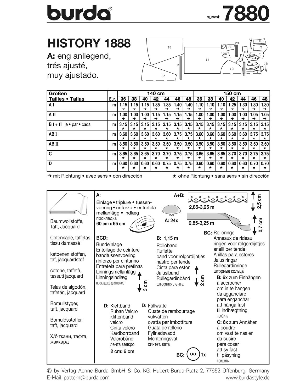 Stoffempfehlung: Baumwollstoffe, Taft, Jacquard