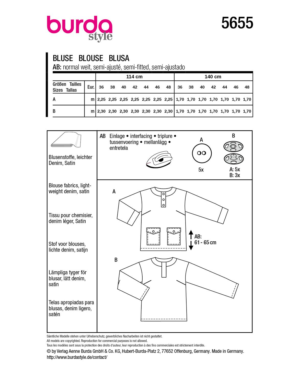 Empfohlener Stoff: Blusenstoffe, Denim, Satin