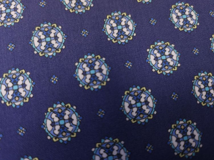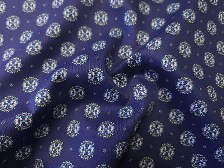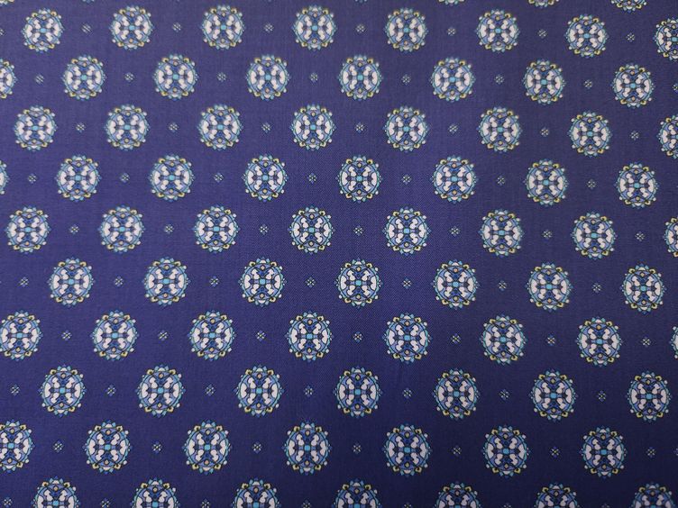 Baumwollstoff mit filigranem Muster in Blau.