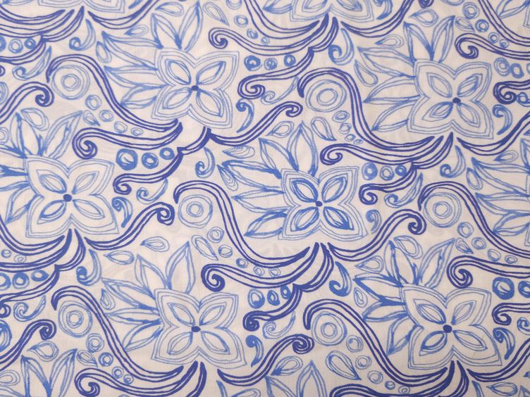 Tamado Baumwollstoff, weiss blau