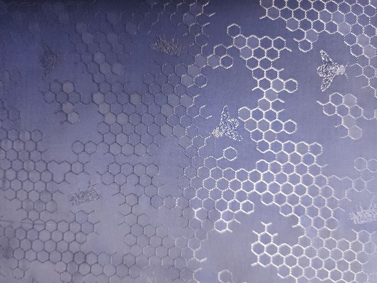 Futterstoff Wabenmuster mit Bienen in grau.
