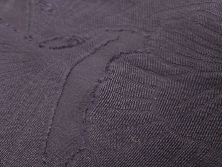 Jacquard Stoff mit Ausbrennern und 3D Struktur in blau.