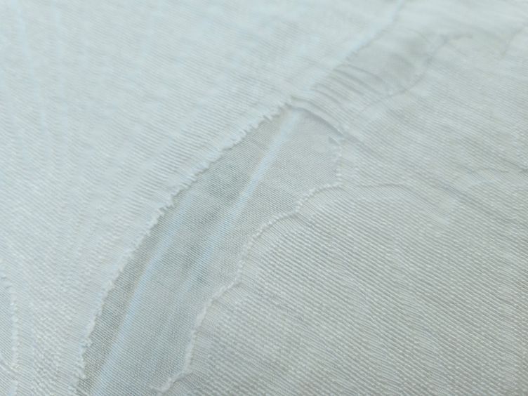 Jacquard Stoff mit Ausbrennern und 3D Struktur in offwhite.