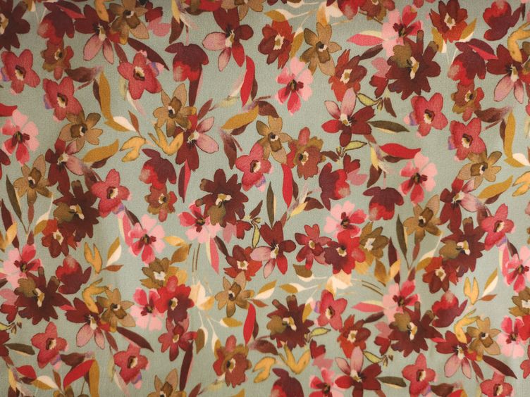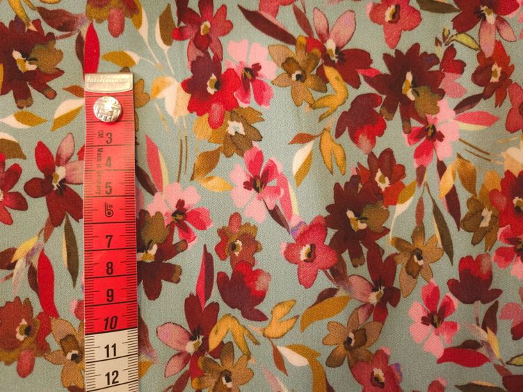 Viskosestoff mit Blumenprint. Durch den Elastananteil sehr angenehm zu tragen.